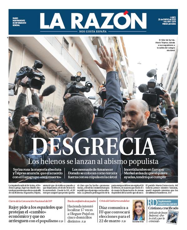Como siempre los fascistas disfrazados de "demócratas" son muy creativos, todo lo que sea que los ricos, explotadores, privilegiados, abusadores, si ellos no ganan las elecciones, entonces son "populistas", y ocurren todas las "desgracias", claro para ellos que les cortan un poco sus robos y abusos, por qué los pobres que son pobres porque ellos se lo han robado todos su derechos, ¿a qué le pueden tener miedo, si ya está muertos y muriéndose de hambre? ¡Ya está bien! ¡Y ya va siendo hora que haya un verdadera democracia! ¡Y por delante de todo estén los derechos de todos y cada uno de los ciudadanos! Es decir, que nadie pase hambre, no tenga casa, sanidad, educación, y todo lo que tiene que tener una persona para ser medianamente feliz! ¡Viva Syriza!
